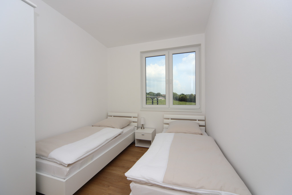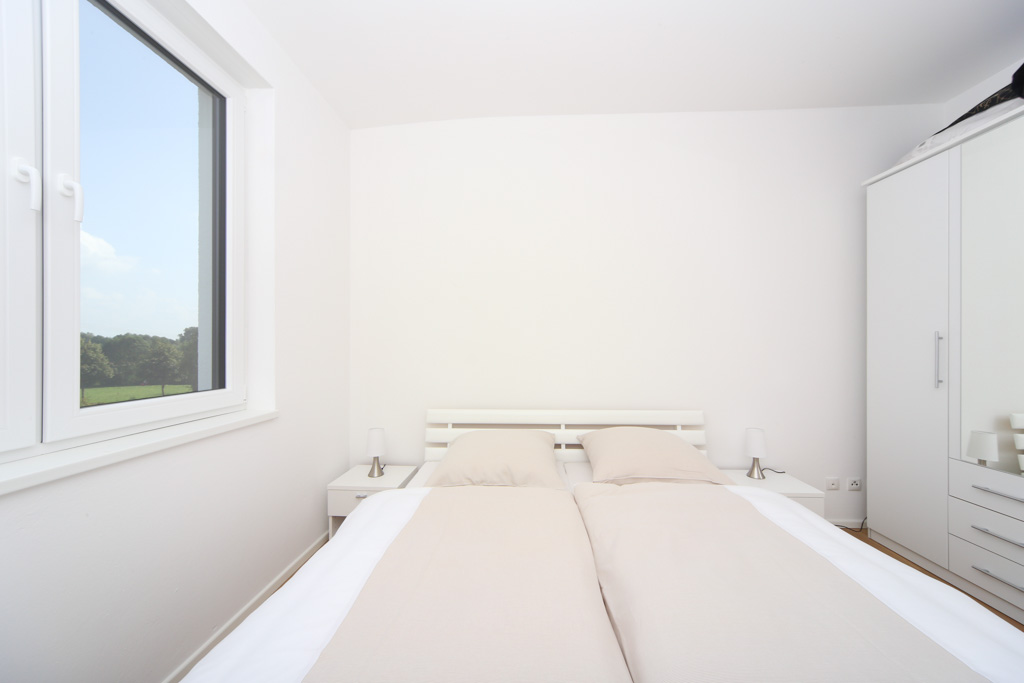 Schlafzimmer 2: Einzelbett (< 100cm * < 180 cm); Bettwäsche, Kleiderschrank, Leselampe